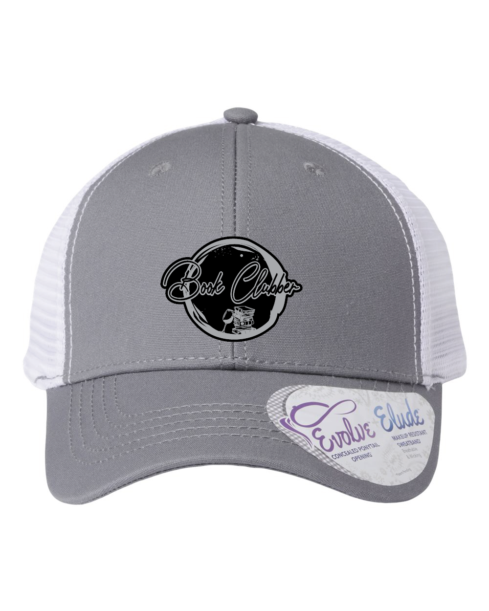 Our Book Clubber hat is a low profile, unstructured, 6 panel hat with a hidden ponytail opening.