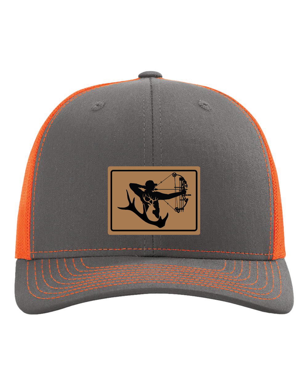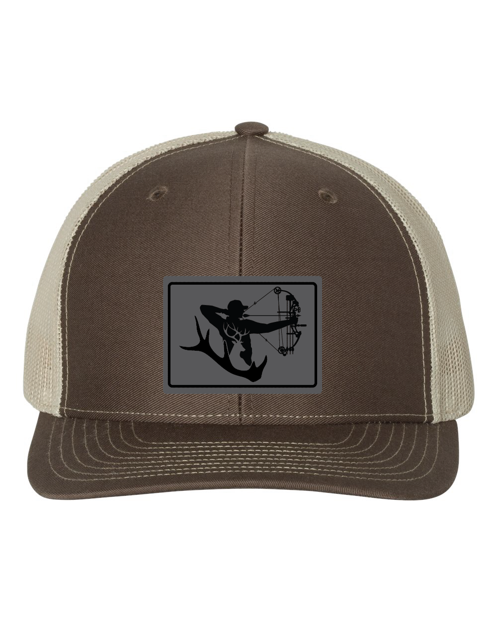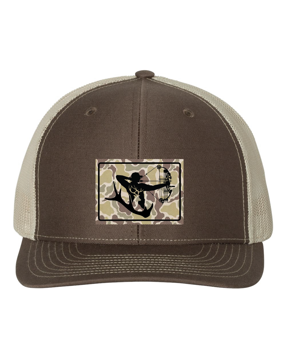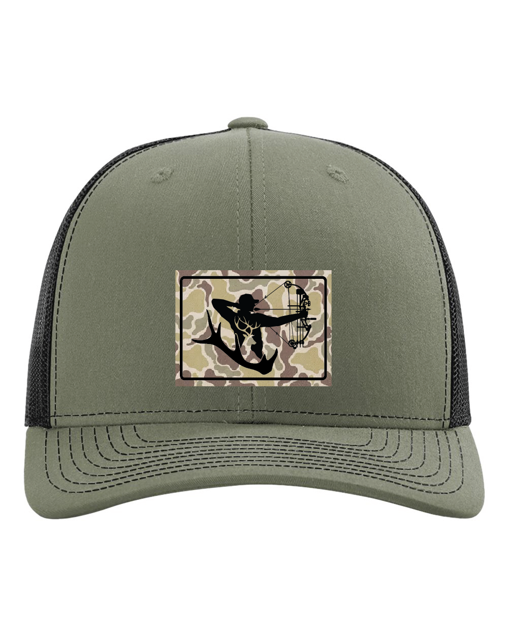 Our Bow Hunter hat is a an adjustable, structured 6 panel trucker hat.