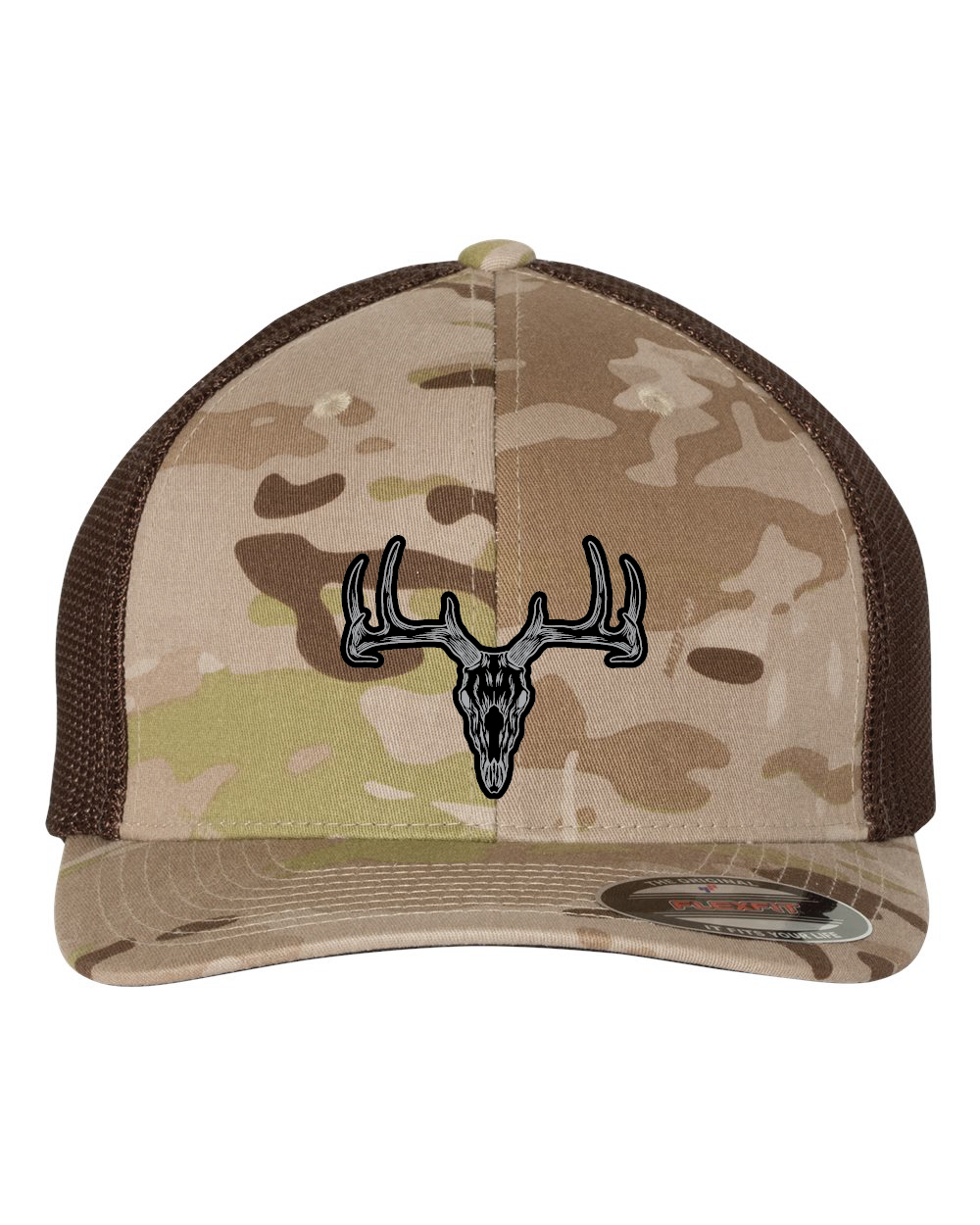 Our Deer Skull Patch Hat is a structured, six-panel, mid-profile hat with flexfit technology.