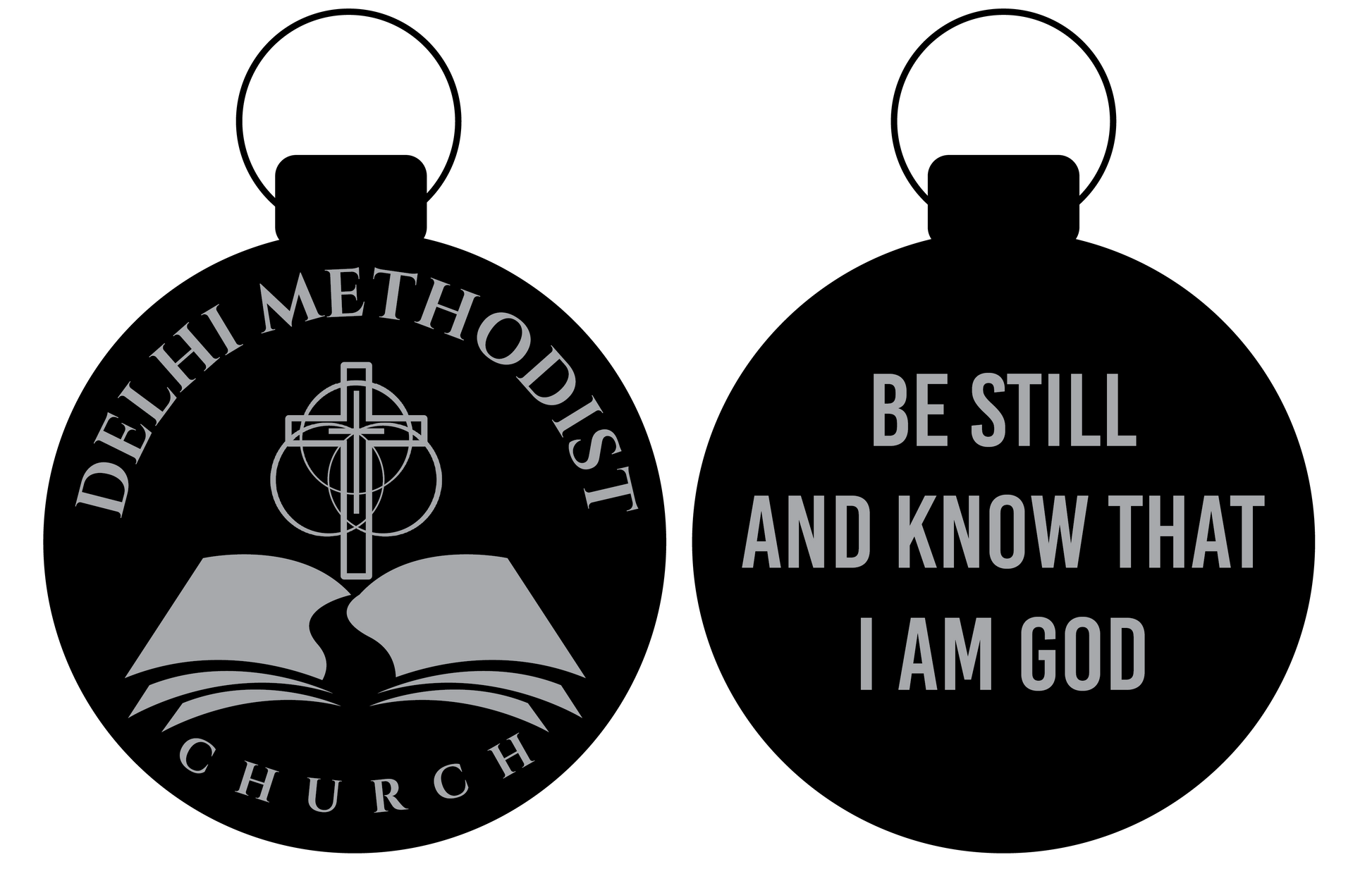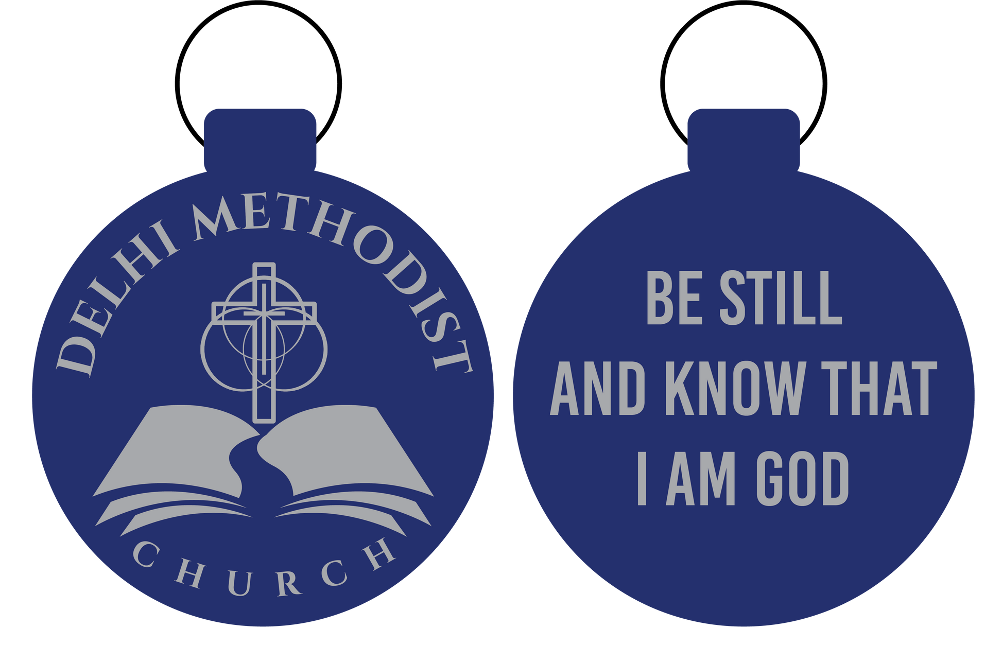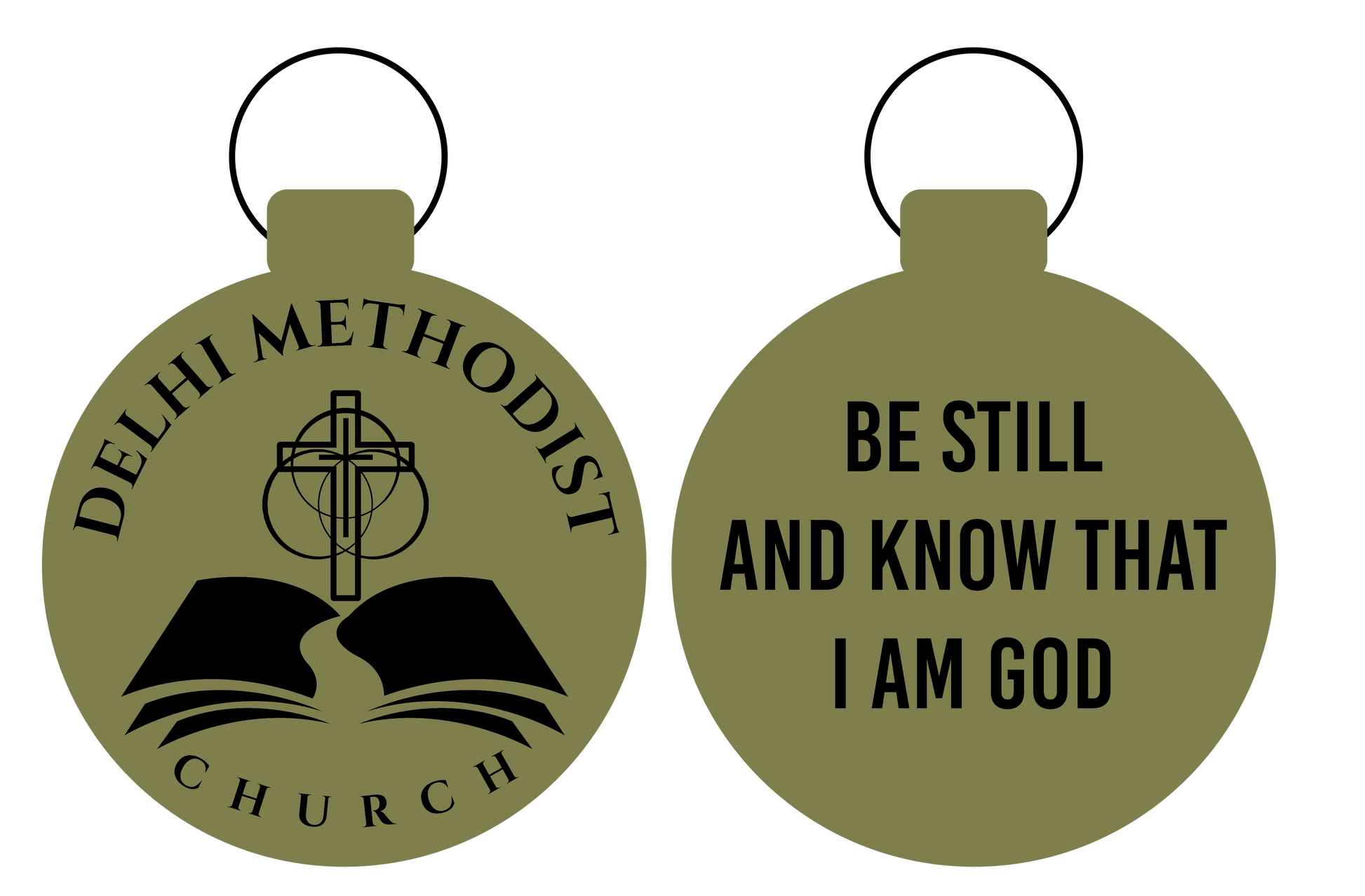 The Delhi Methodist Keychain features a meaningful front and back design, showcasing the church logo alongside an uplifting Bible verse, engraved into leatherette. This keychain is a supportive reminder of faith and community, perfect for carrying inspiration with you every day.