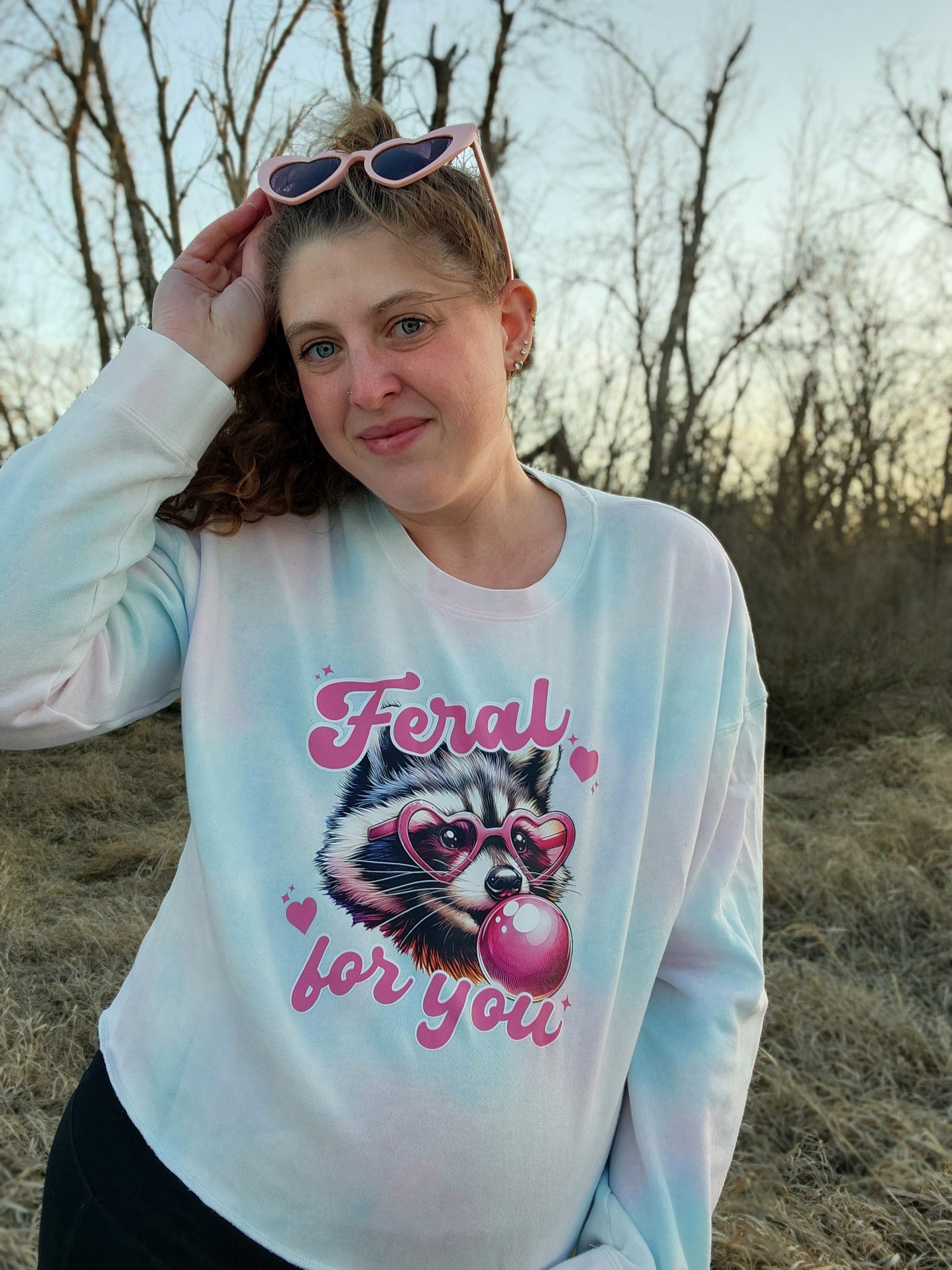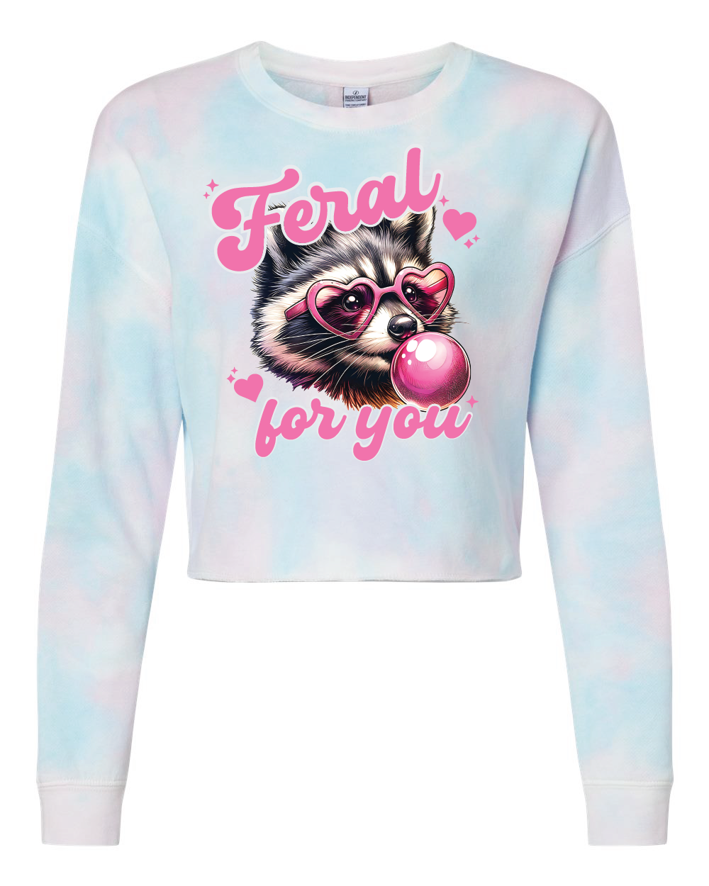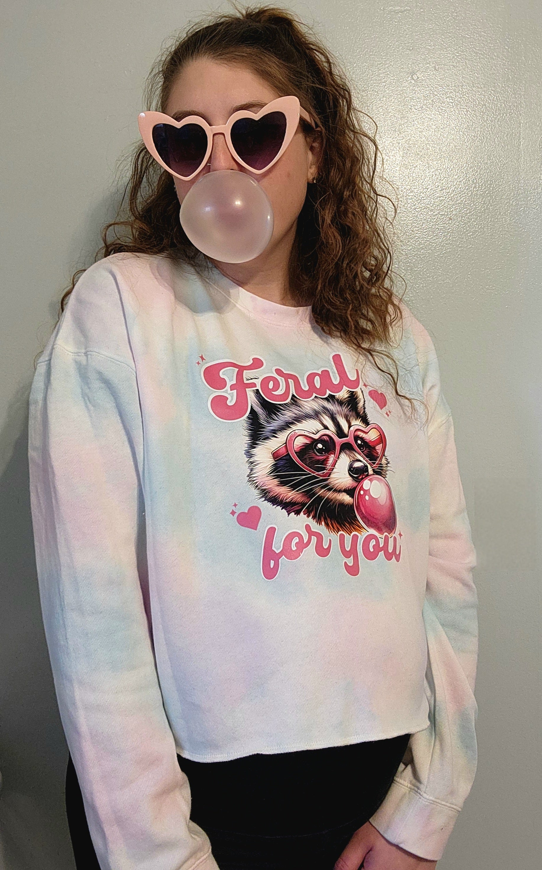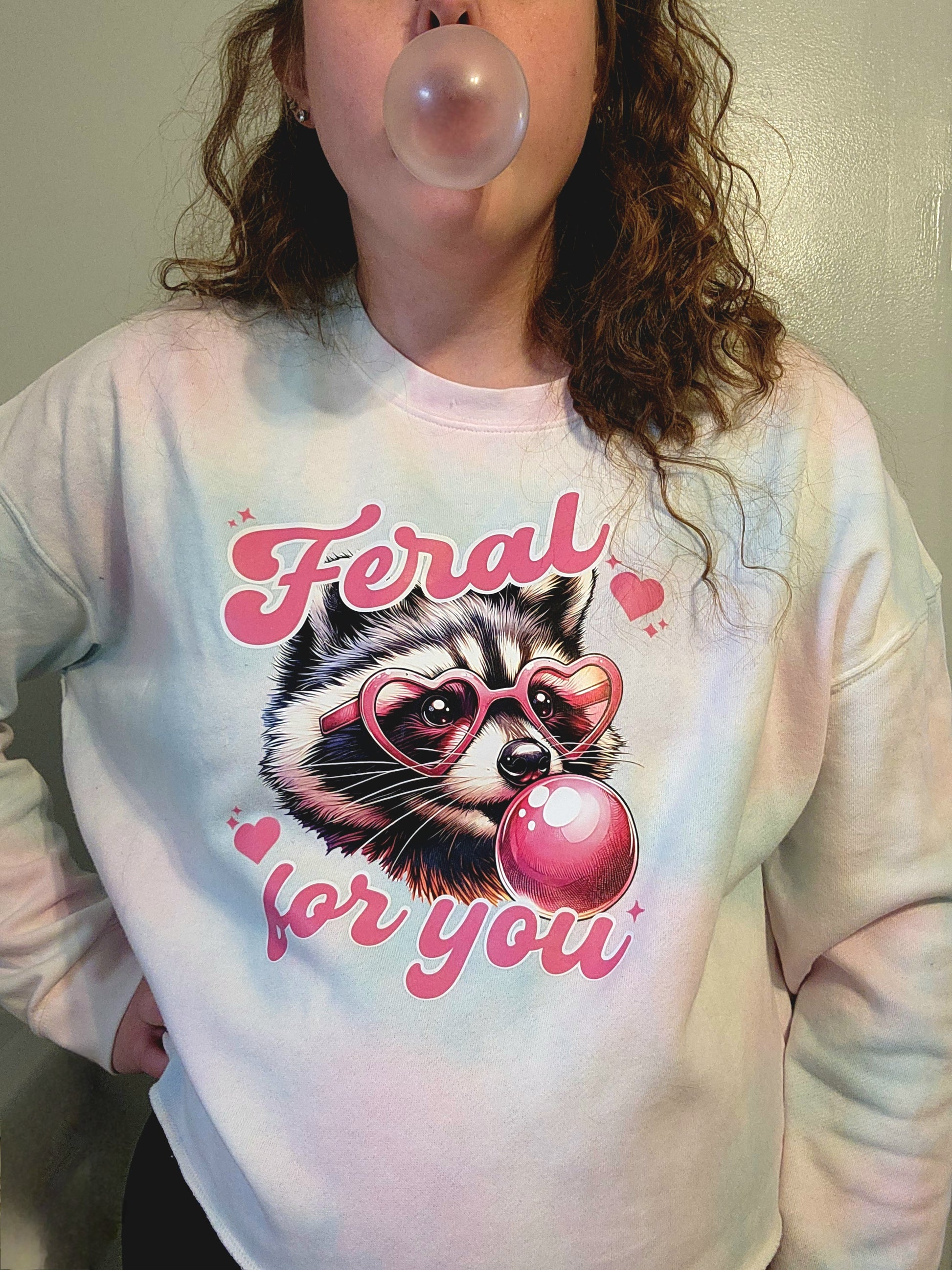 Get ready to channel your inner animal with our Feral for You Crop Sweatshirt. Featuring a playful raccoon graphic and a quirky "feral for you" slogan, this sweatshirt is perfect for adding a touch of fun to your Valentine's Day look. Get wild and cozy in this must-have piece!