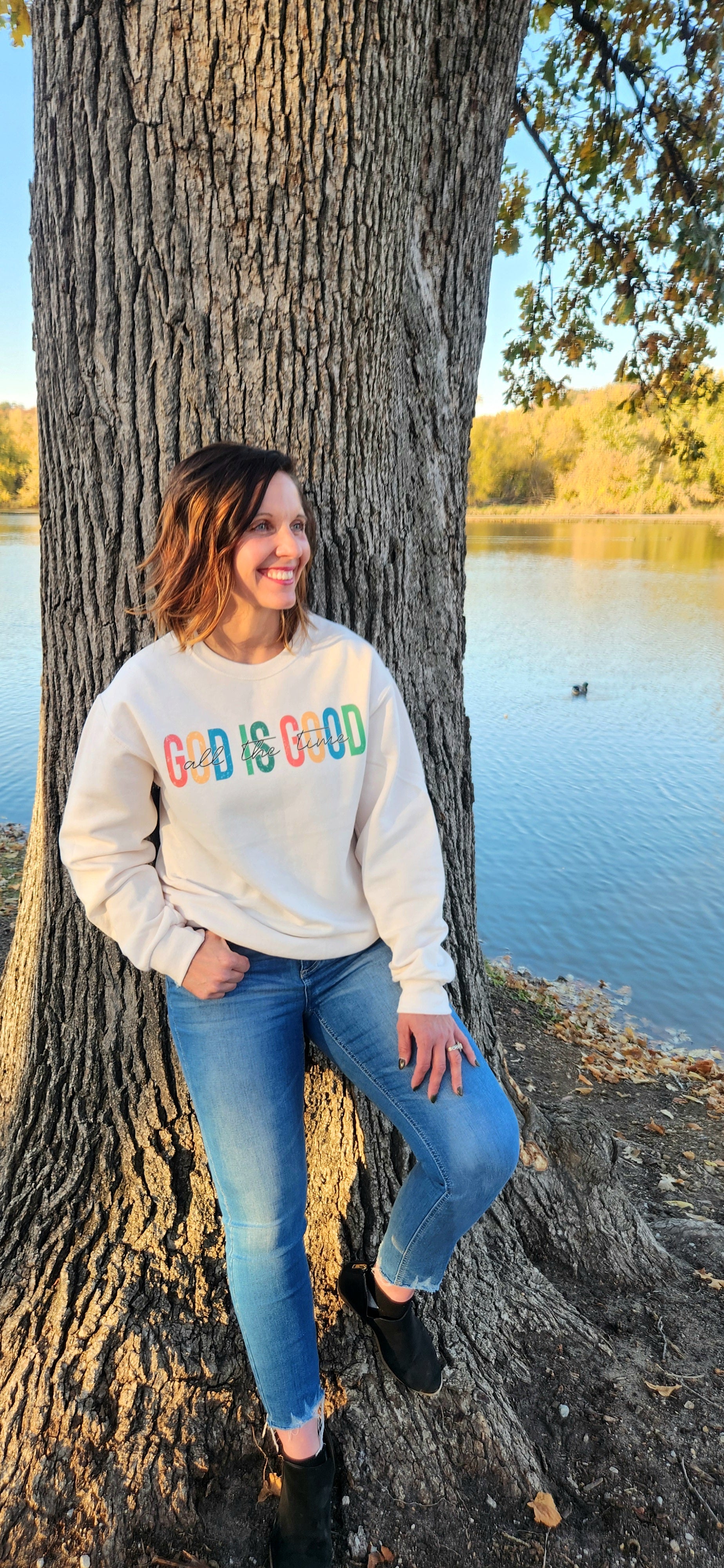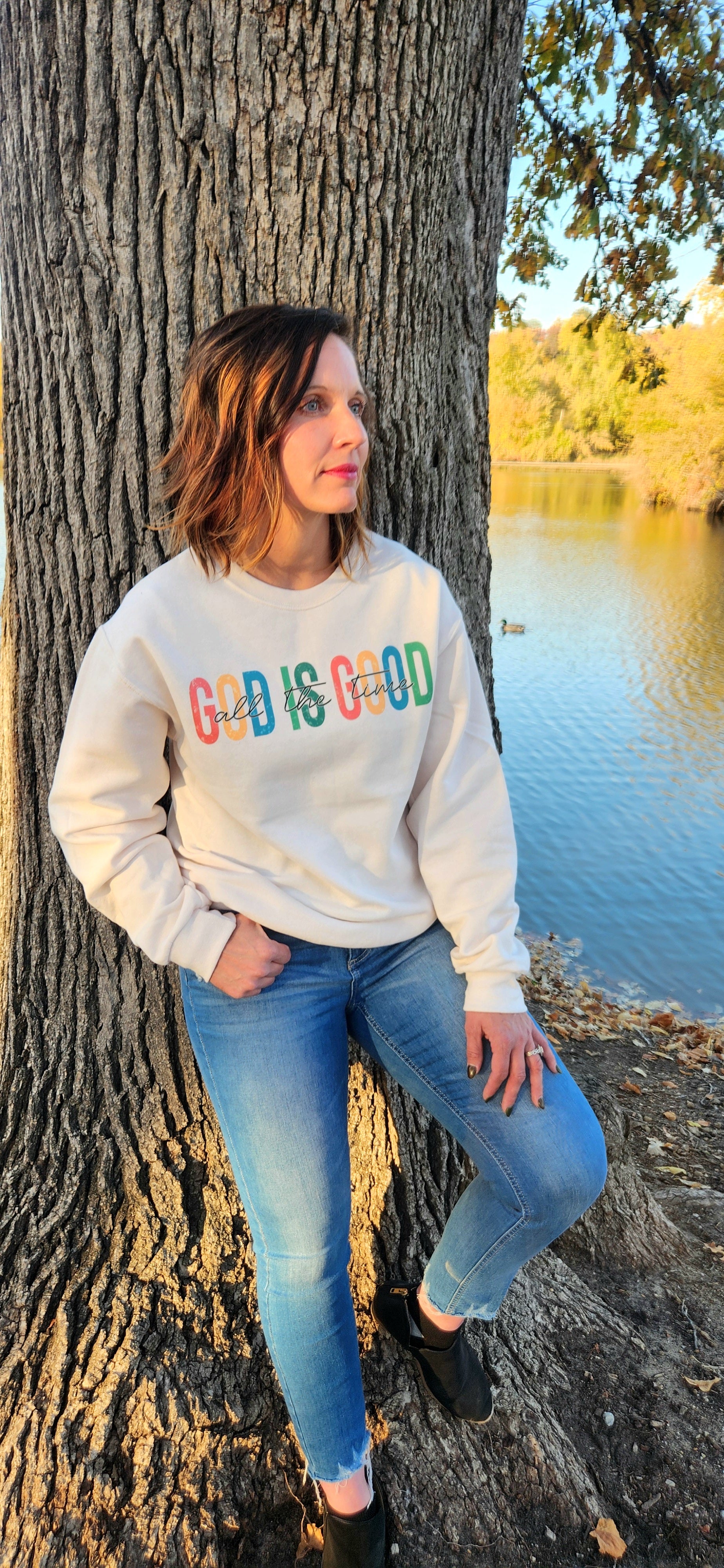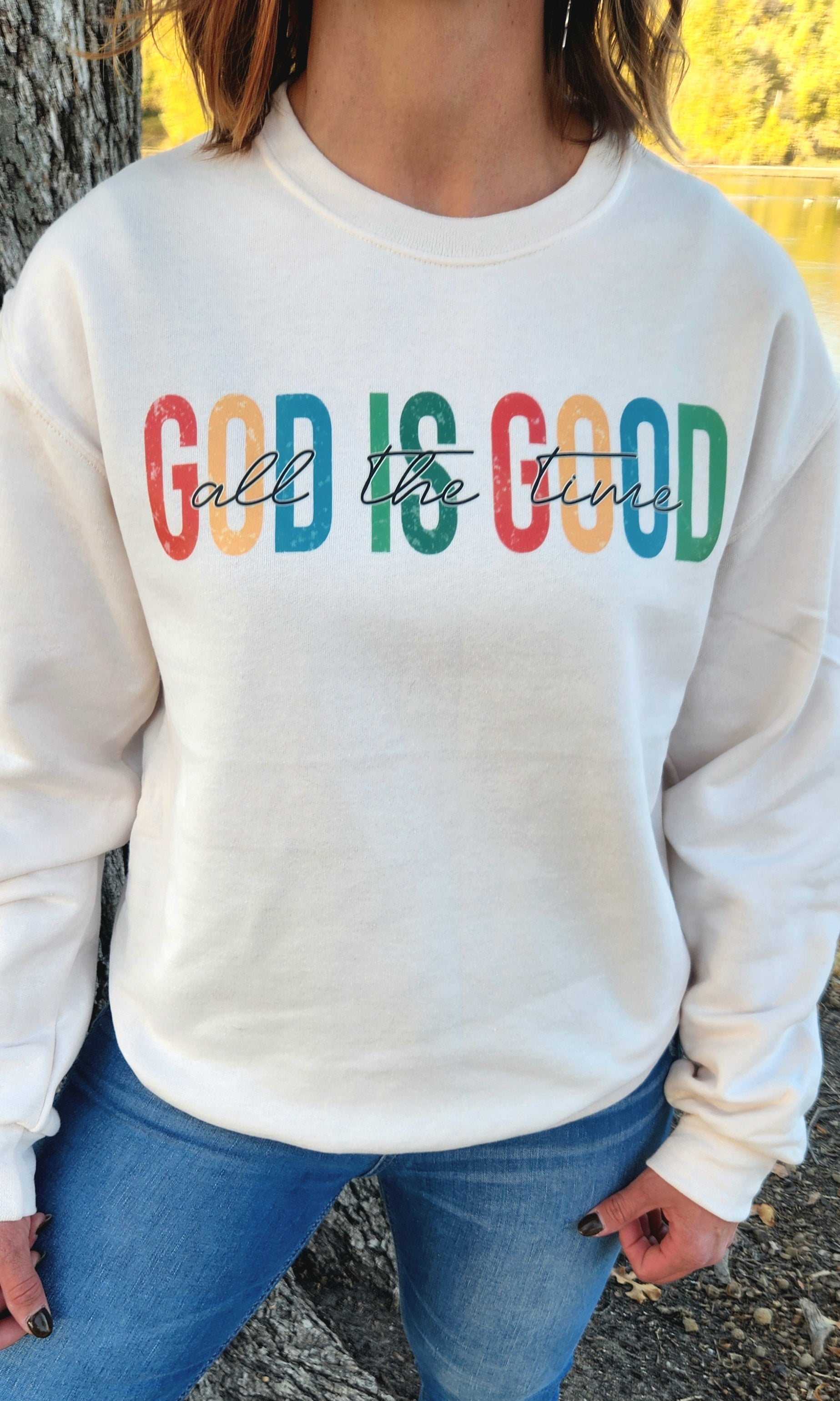 Stay cozy and stylish with our God is Good Sweatshirt. Let everyone know that God is Good All the Time with this faith-based design. Perfect for everyday wear, this sweatshirt will keep you warm and spread a positive message. Embrace your faith and stay comfy all day long.