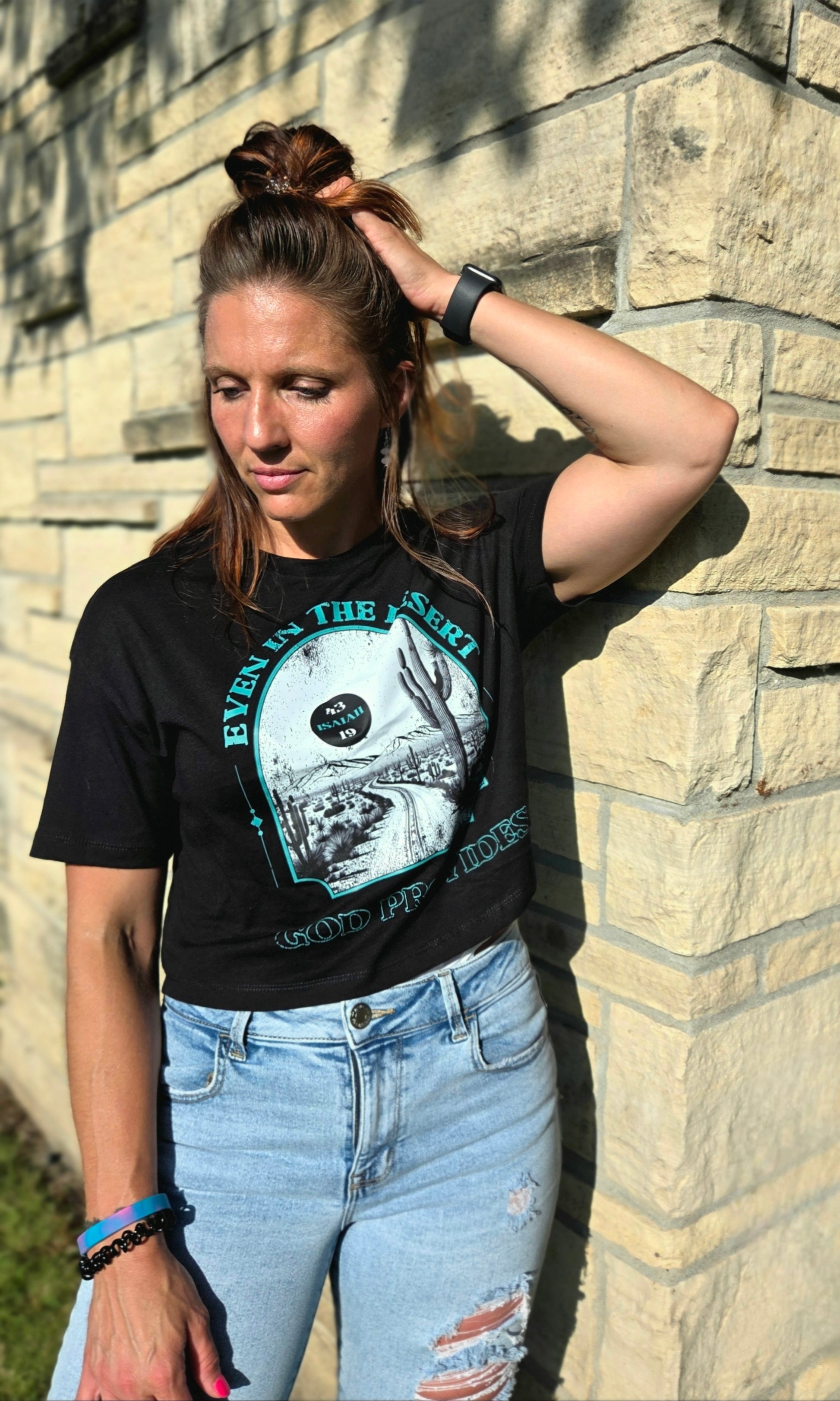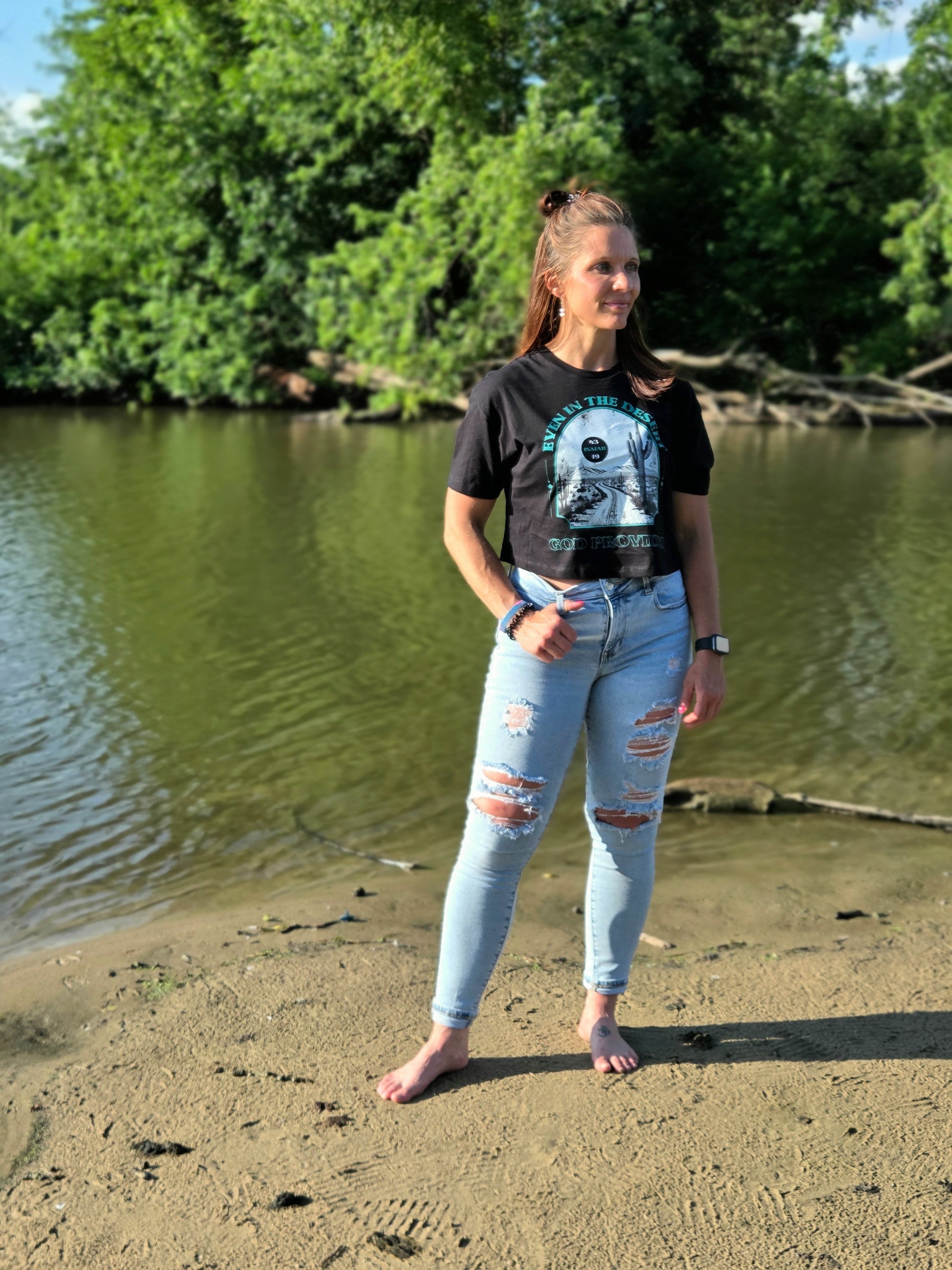 Our God Provides shirt is a super soft black ,100% Airlume combed and ring-spun cotton tee with a retail crop fit and is preshrunk.