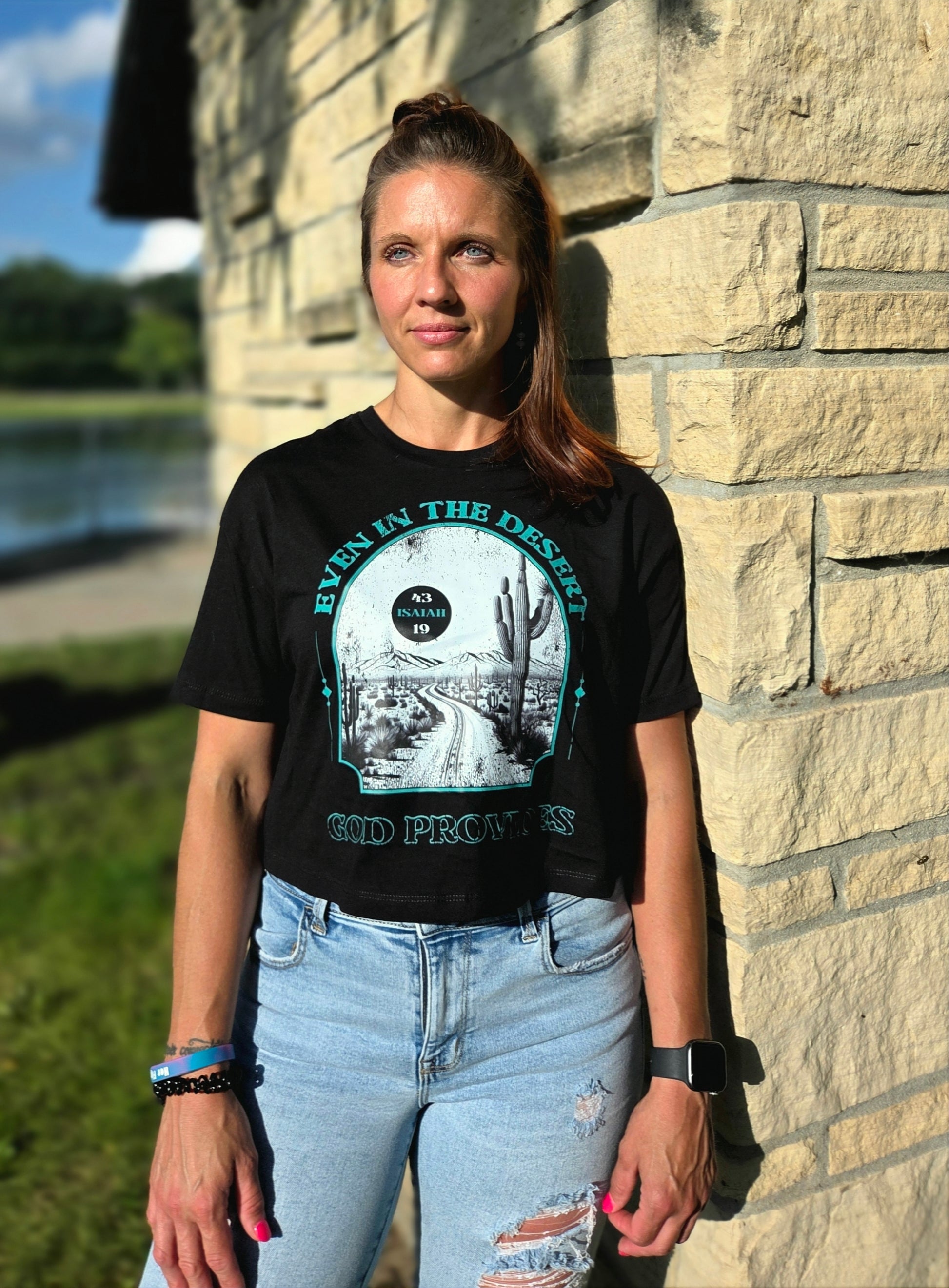 Experience the message of faith with our God Provides Tee. Featuring a powerful Bible verse and a serene desert scene, this tee reminds us that God always provides for His faithful. Show your devotion and spread the word with this Christian-inspired design.