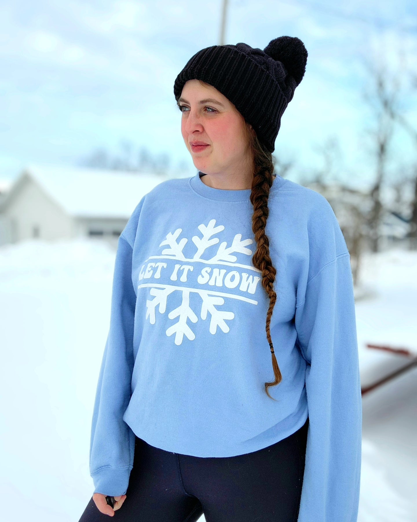 Are you ready for the snow!? This classic fit crewneck sweatshirt is perfect to snuggle up inside with a hot chocolate watching the snow lightly fall.