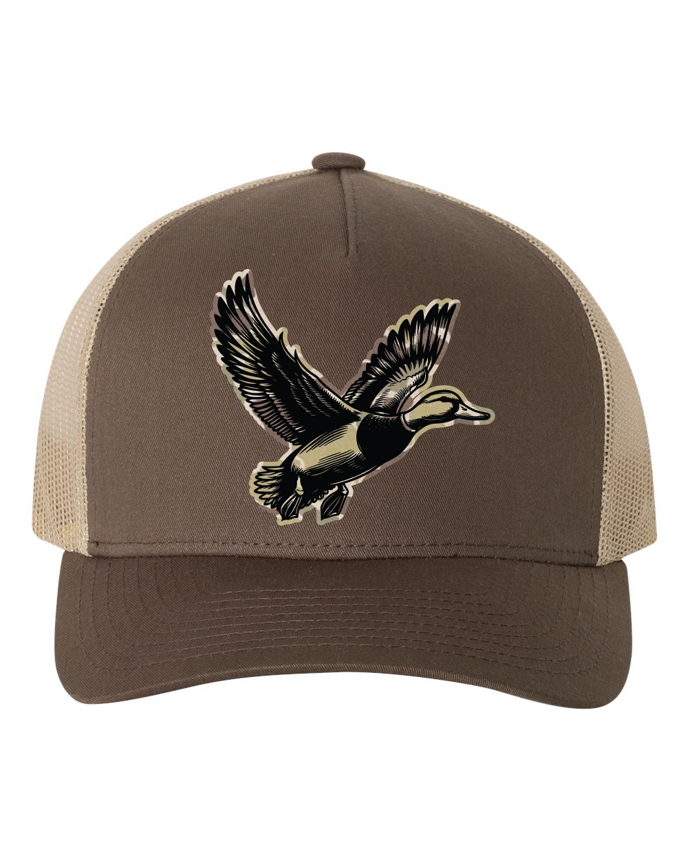 Our Mallard Patch Trucker Hat is a structured mid profile, 5 panel, mesh back with an adjustable closure.