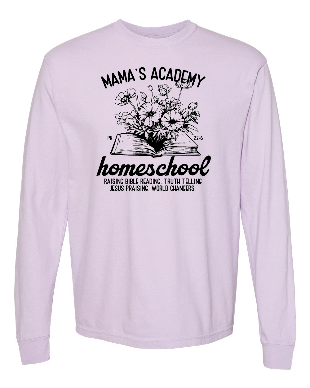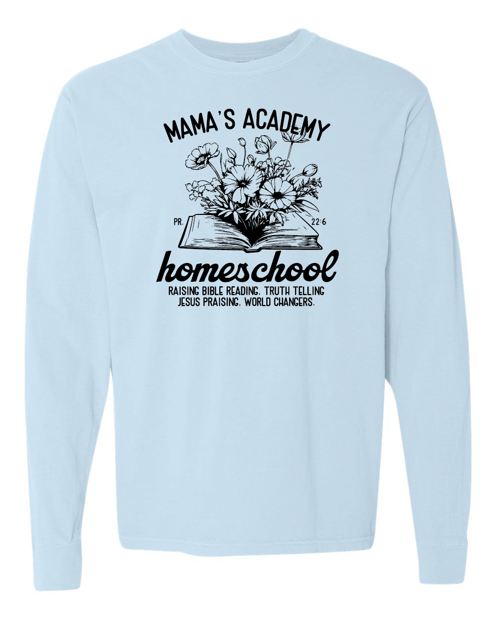 Empower and unite your homeschooling family with Mama's Academy tee. Teach and inspire with a faith-based approach, fostering a love for learning and leadership. Raising believers one verse at a time.