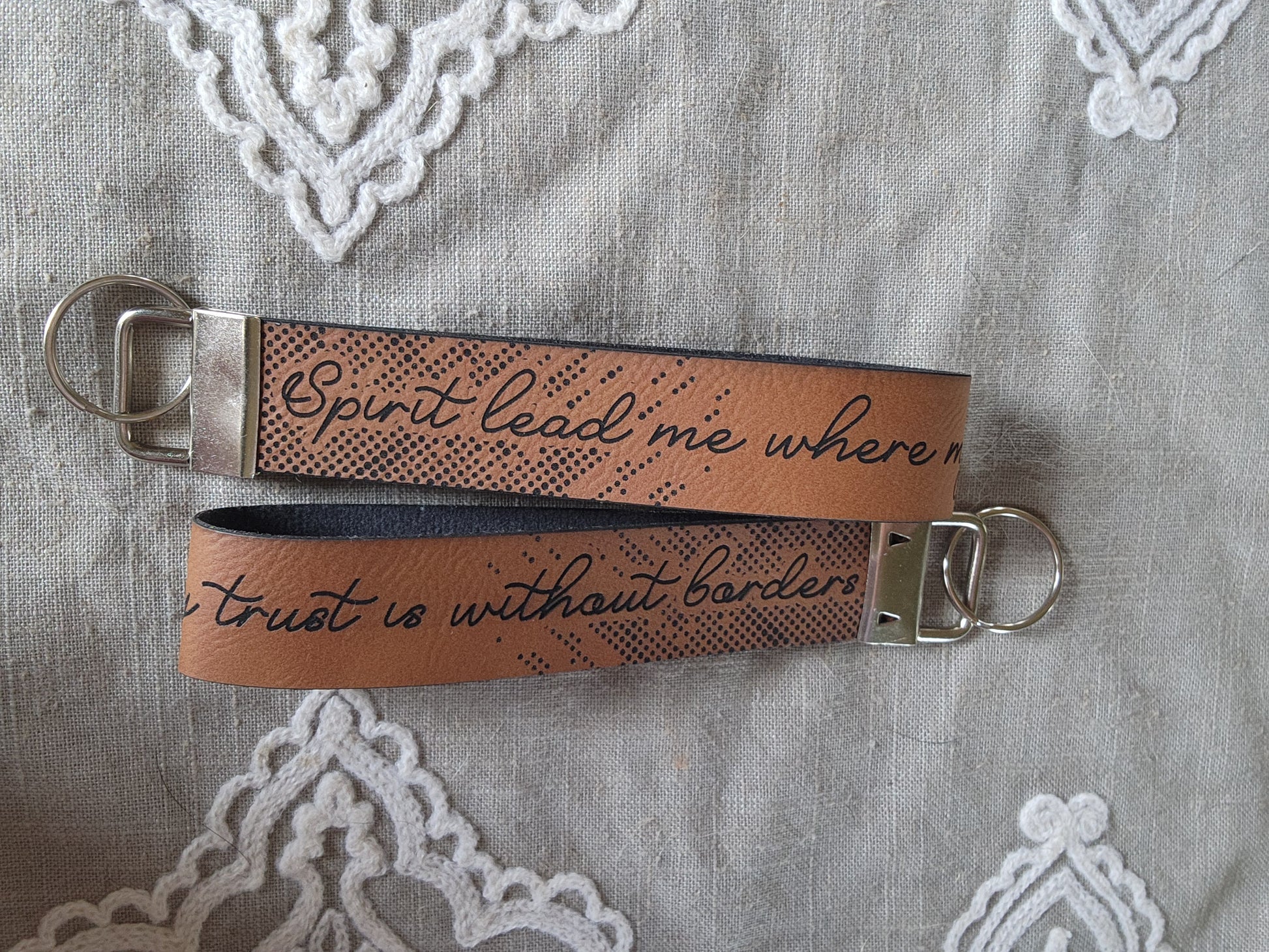 Embark on a journey of faith and trust with our "Spirit Lead Me" wristlet keychain. Featuring a powerful Christian message, this keychain serves as a constant reminder to keep the faith. With a sturdy design, it's the perfect accessory for keeping your keys secure while spreading positivity.