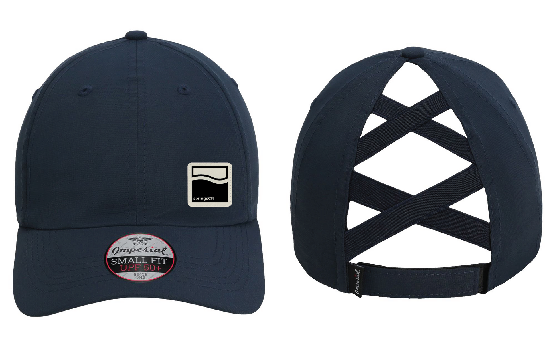 The Springs of Life Patch Hat is an unstructured, six-panel, low-profile hat that is accessorized with an offset leatherette patch. It also has an open back panel with matching elastic cross bands and moisture- management and antimicrobial sweatband. The bill is pre-curved. It is also adjustable with a micro hook-and-loop closure. The material is 100% recycled polyester, performance fabric.
