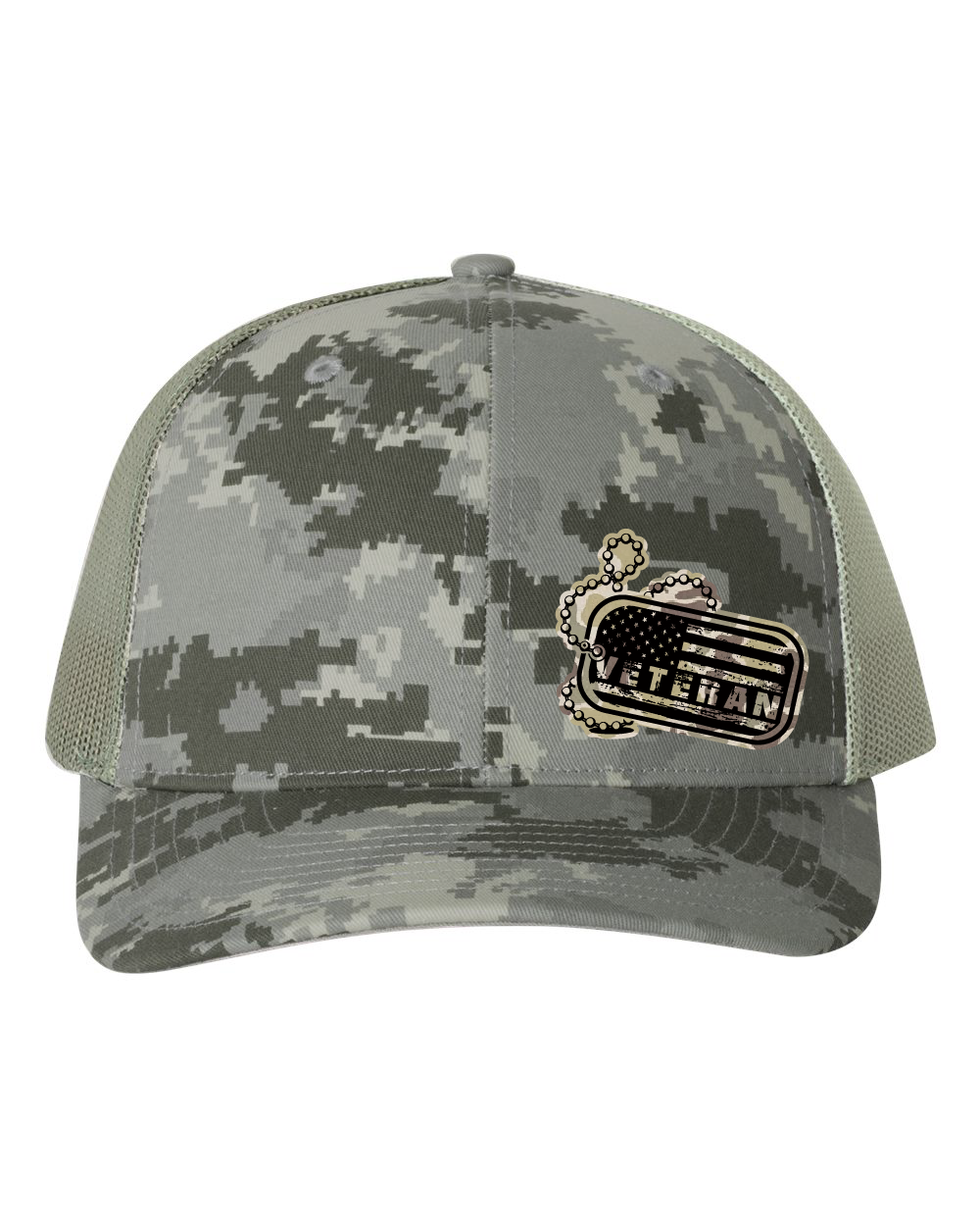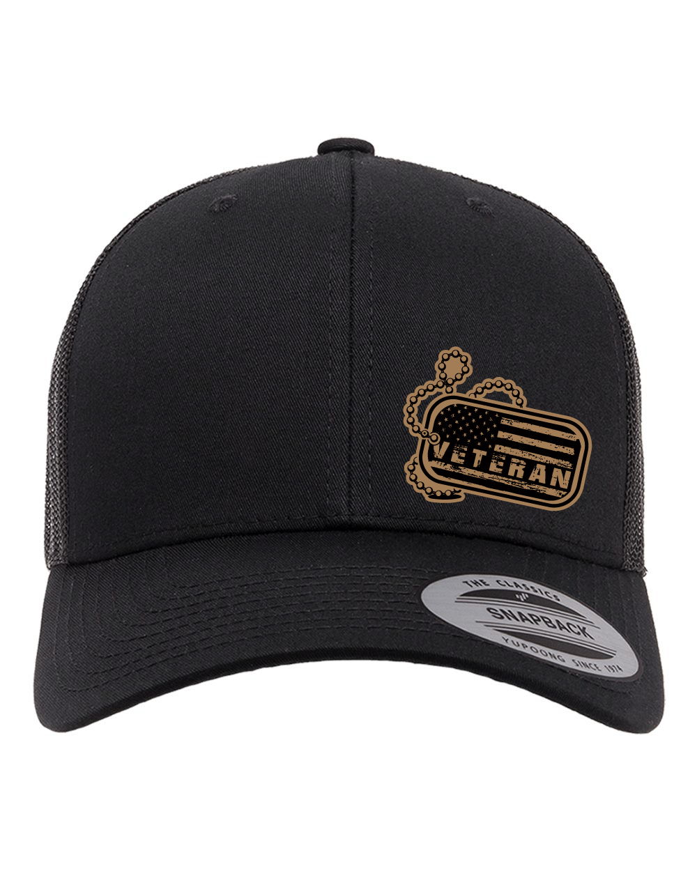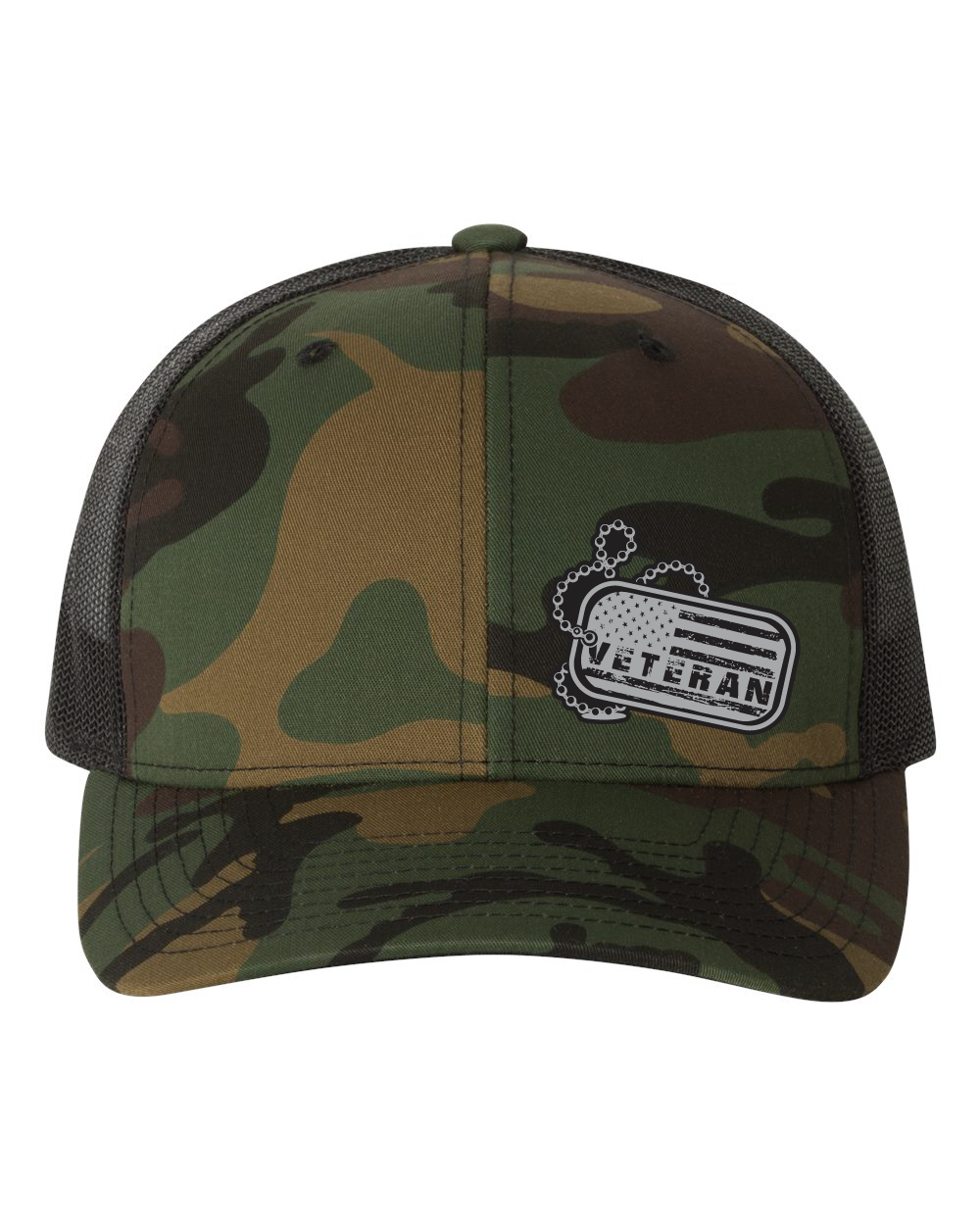 Our Vet Tags Patch Trucker Hat is a structured mid profile, 5 panel, mesh back with an adjustable closure.