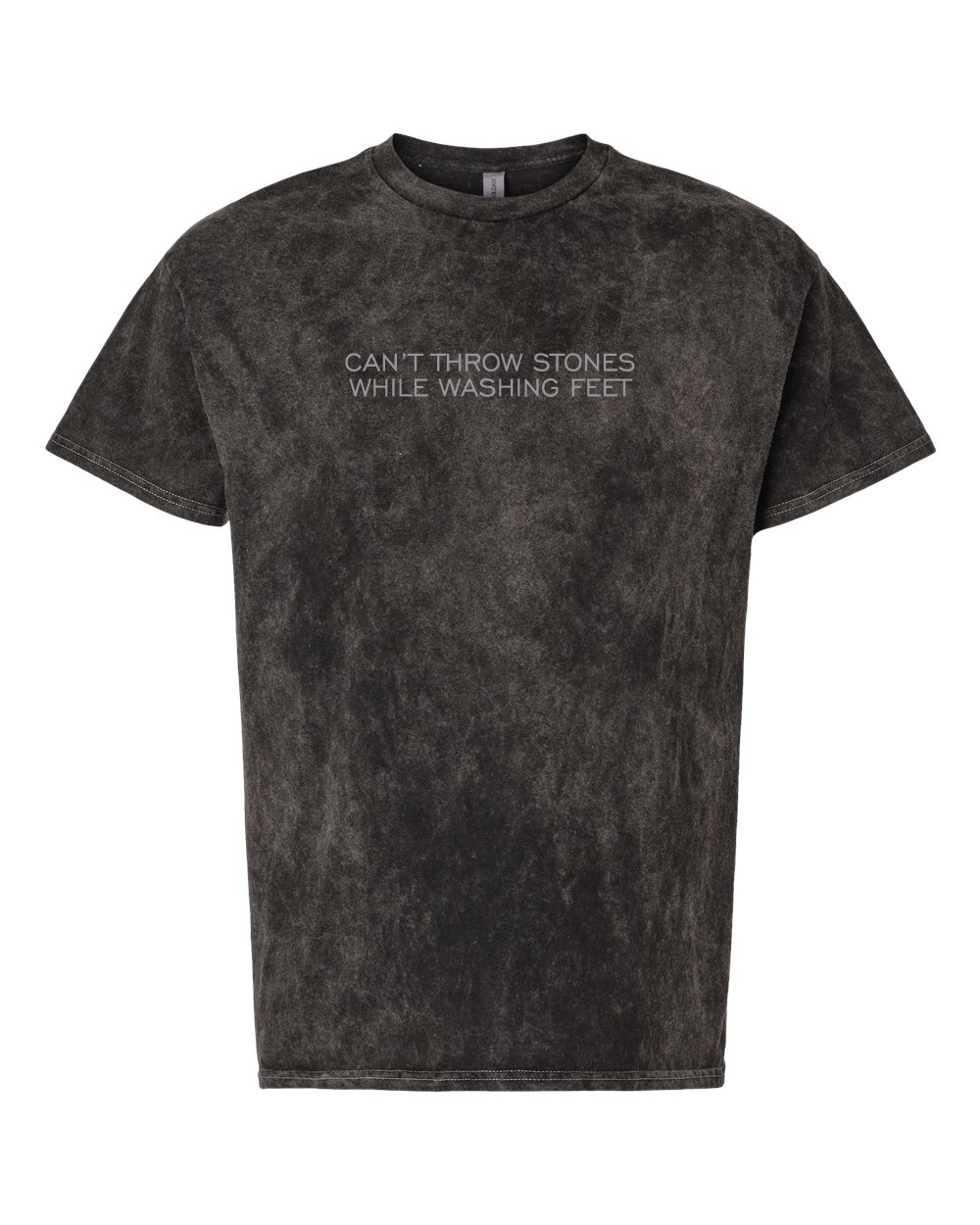 This unisex adult tee is a black 100% cotton tee with an all over mineral wash pattern.